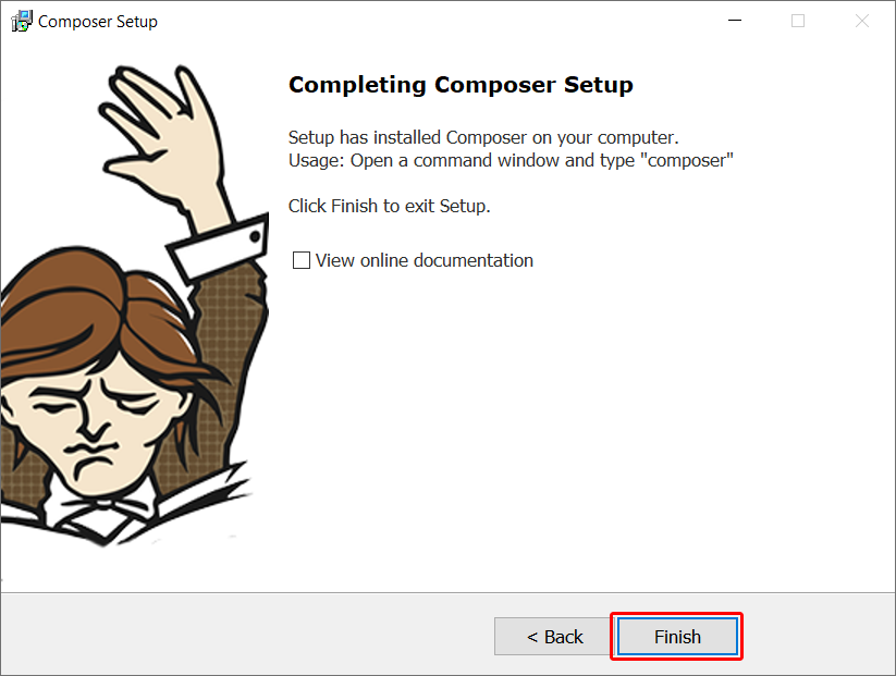 7. ติดตั้ง Composer เสร็จแล้ว ให้กดปุ่ม Finish